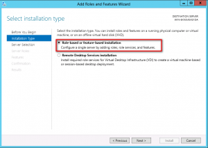 3. Dans l’assistant d’ajout des rôles et fonctionnalités, sélectionnez Role-based or feature-based installation.