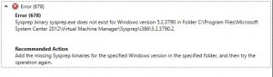 Lorsque vous tentez de créer un template de machine virtuelle avec Windows Server 2003 ou Windows XP, vous obtenez l’erreur suivante: Error (678) – Sysprep binary sysprep.exe does not exist for Windows version 5.2.3790.